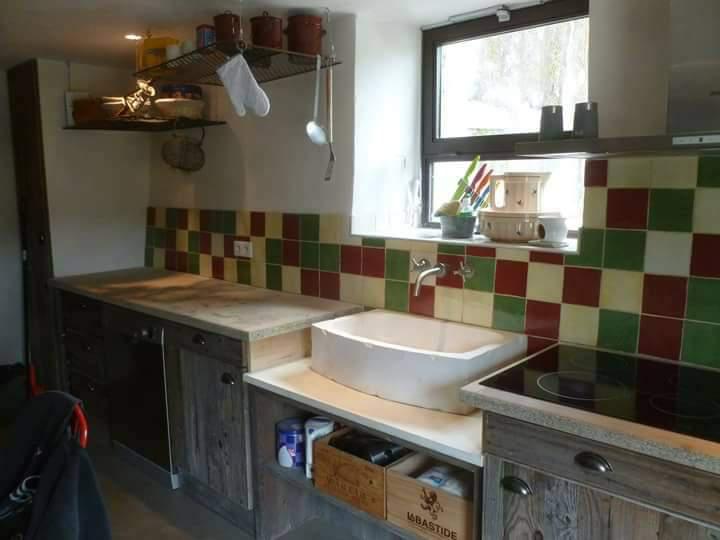 Au rez-de-chaussée : cuisine équipée de 23 m2 donnant sur une grande terrasse.